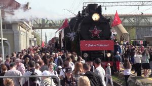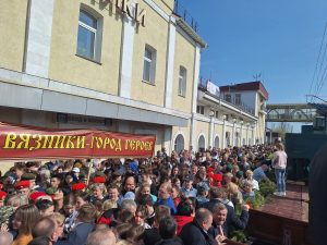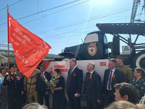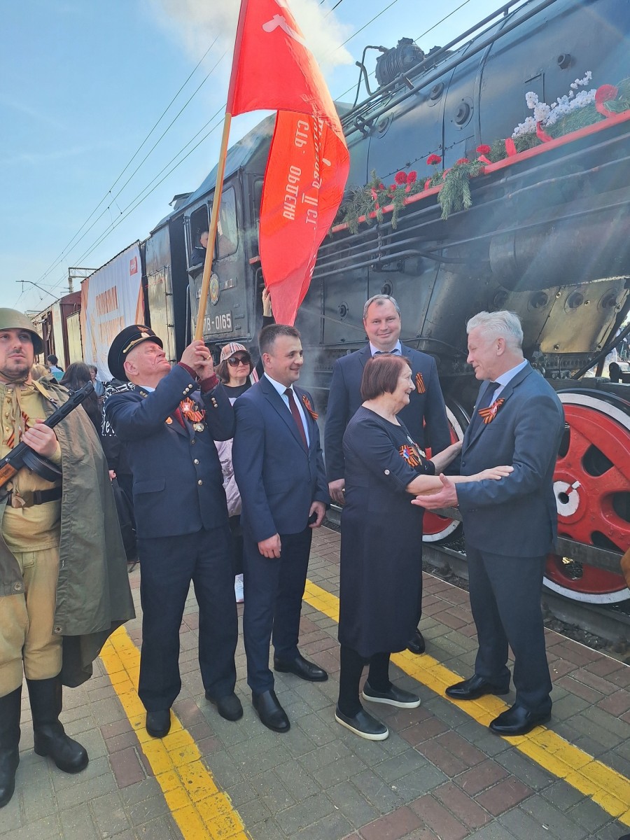 Вязниковцы встретили «Поезд Победы» по-праздничному, как и полагается столь значимому событию. Казалось, что большая часть жителей города в этот день побросала свои дела и приехала на вокзал. Даже солнышко, с утра прятавшееся за плотными тучами, в момент прибытия передвижного музея озарило платформу тёплыми весенними лучами. И в этой яркой и праздничной атмосфере наши земляки знакомились с уникальной экспозицией, угощались гречневой кашей из полевой кухни, фотографировались с увешанными наградами ветеранами.