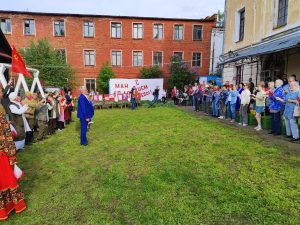 Программа называлась «Победный май». Открыл её премьерный показ спектакля под названием «Блокадный хлеб» в исполнении театра-студии «Зеркало» Дома народного творчества. На час гости акции перенеслись из майских Вязников в морозный блокадный Ленинград. По сценарию постановки, молодёжь XXI века становится свидетелем драматических событий, которые разворачиваются в очереди за нормой хлеба. Здесь и трагедия, и криминал, и место для простого человеческого сострадания. Режиссёр Елена Еремеева смогла достучаться как до сердец зрителей, так и самих актёров. Юные и взрослые театралы не играли, а сопереживали.