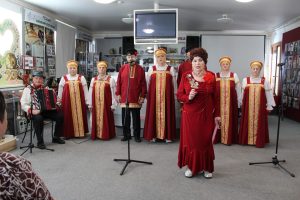 В концерте прозвучало 15 песен. Каждую интересно представляла ведущая хора – Пояркова Вера. А как понравились слушателям солисты — Татьяна Анисимова, Анатолий Животягин, Ирина Меринова, Анатолий Венедиктов. Песни звучали под сопровождение баяниста Андрея Митрофанова.