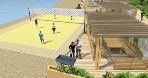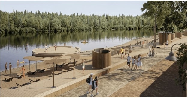 На сегодняшний день данный пляж – один из самых популярных у жителей всего района. Сюда приезжают семьи с детьми. Многие проводят на свежем воздухе все выходные. Именно поэтому инициативная группа жителей выступила с предложением обустройства берегового участка протяженностью 200 м и шириной 60 м. Предполагается также выполнить покрытие всей территории речным песком. На пляжном участке площадью 100х30 м предлагаем обязательную установку спасательного поста, шезлонгов под навесами, скамеек, качелей, кабинок для переодевания. Обустройство площадок для игры в волейбол и бадминтон в зоне активного отдыха, спортивных комплексов и тренажеров, а также установка урн для сбора мусора.