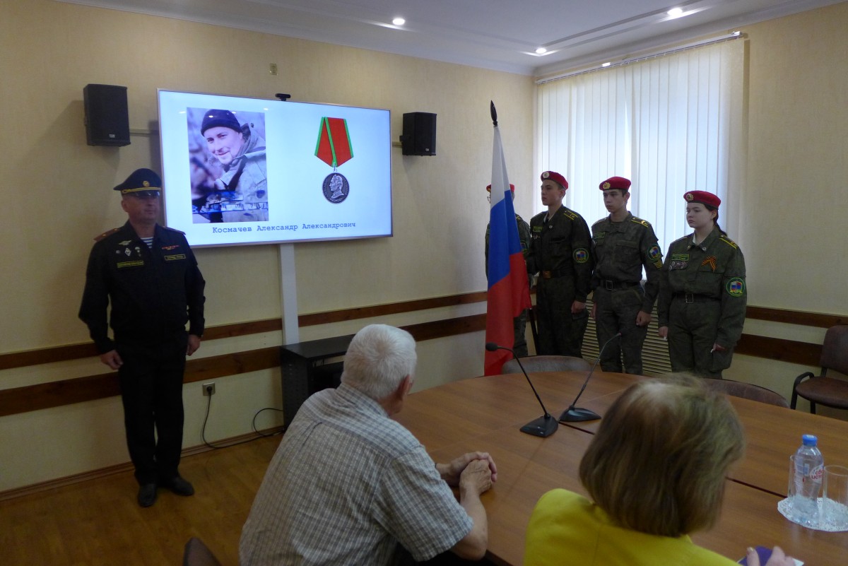 Все присутствующие на церемонии минутой молчания почтили память Александра Космачева и всех, кто погиб, защищая Отечество.