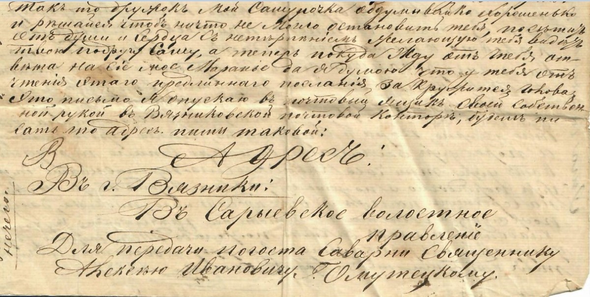Фрагменты писем позапрошлого века, написанные в Вязниковском уезде и адресованные в Вязниковский уезд
