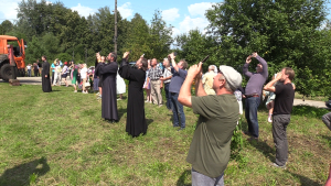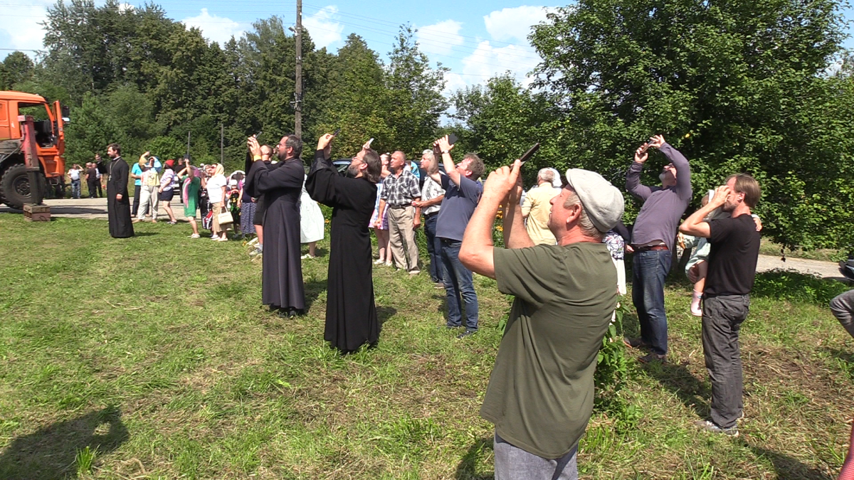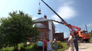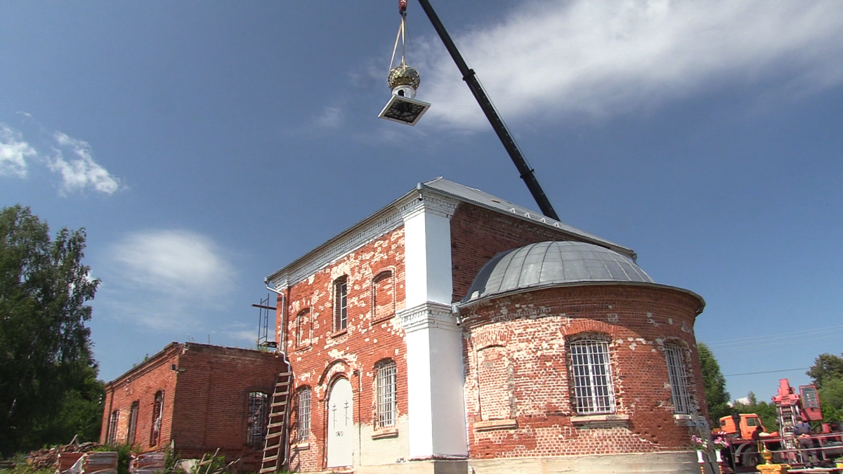 Это очень трогательное и эмоциональное зрелище — видеть, как старый храм обретает былое величие… Событие привлекло внимание жителей окрестных деревень и друзей здешнего прихода, прибыли также гости из Владимира, Мурома и Москвы. С раннего утра, задолго до назначенного времени церемонии освящения, возле старой церкви было уже многолюдно. Работала тяжелая специализированная техника. С помощью двух кранов на крышу храма были подняты церковный купол и рабочие, которые тут же приступили к монтажу конструкции. На фоне практически безоблачного голубого неба золотые грани нового купола ярко сверкали на солнце. Словно весь мир вокруг радовался восстановлению исторической справедливости, духовному возрождению народа.