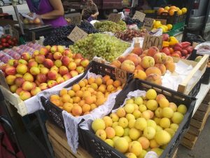 На Соборной площади снова открылась традиционная сезонная ярмарка. На прилавках – обилие овощей и фруктов. Помимо традиционных томатов, перцев, лука здесь можно купить спелые персики, медовые абрикосы, нектарины и виноград. Август уже радует сладкими дынями и арбузами.