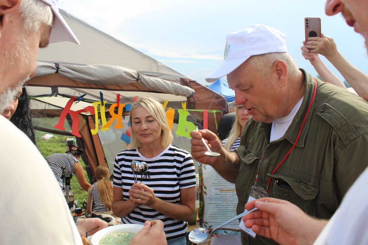 Однако обо всем по порядку. На праздник собралось около двух тысяч гостей со всей Владимирской области (это рекорд для таких праздников), не побоявшихся капризов погоды. Прогноз обещал дождь и грозу во второй половине дня, но на самом деле гроза и ливень грянули еще до 11 часов утра. К счастью, самые грозные и темные тучи обошли место проведения праздника стороной и гроза лишь краем и ненадолго зацепила берег Клязьмы у Суслово. А вот по соседству в Камешково, Ковровском и Вязниковском районах стихия ярилась вовсю. Так что можно сказать, тем, кто собрался на «Праздник ухи-2025» сильно повезло, настроение погодные катаклизмы им не испортили.