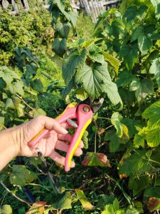 Обрезку ягодных кустарников, таких как красная и черная смородина советую проводить в августе, а не осенью, как рекомендуют некоторые садоводы. После сбора урожая, на зеленых растениях хорошо видны больные и засохшие ветви, поврежденные вредителями лисья. Если их убрать своевременно, то это защитит куст от распространения опасных насекомых, позволит ему «отдохнуть» и заложить новые плодовые почки. Также в конце лета следует обработать смородину от болезней и вредителей (подойдут специальные препараты) и подкормить, к примеру — обычной золой. Раствор готовят из расчета — на один литр золы необходимо 8-10 литров воды.