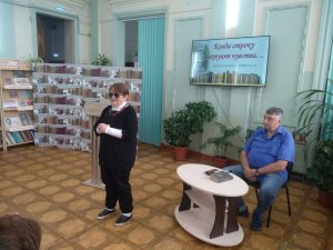 Среди выходивших к микрофону были: Надежда Миронова – постоянная участница таких встреч, Светлана Дейч – на которой лежали еще и организационные вопросы, Роберт Штарев – победитель прошлогоднего поэтического конкурса. Также из числа его лауреатов была и автор «Гимна библиотеки» Наталья Борисова. Свои стихи читали не новички «Дня поэзии» – Людмила Ионова и Наталья Филипенко, а неоднократный его участник Юрий Лебедев сопровождал свое выступление гитарным аккомпанементом.