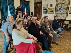В музее собрались сотрудник ИПБЦ «Интеллект» Елена Карева; педагог-ветеран и известный краевед из поселка Степанцево Геннадий Сидоров, сотрудники Вязниковского музея Елена Лебедева и Вера Петрова, бывший сотрудник музея Римма Гарина, житель Вязников Анна Юсова, учитель Паустовской школы Ольга Веденеева, краевед из Успенского погоста Надежда Миронова, представитель ЦДОД Наталья Алексеева, журналист газеты «Маяк» Ирина Кузьминова, известные ревнители патриотического воспитания молодежи и руководители военно-исторического клуба «Памяти 316-й стрелковой дивизии II формирования г. Вязники» Андрей и Александра Баукины, директор Вязниковского историко-художественного музея и журналист Андрей Веденеев, иерей храма села Пески Вязниковского района Петр Галанюк, проживающий в МО Сарыевское журналист и краевед Николай Фролов, глава поселка Никологоры учитель Никологорской школы Юрий Судаков, предприниматель Алексей Тихин, вязниковский краевед Любовь Кострова, секретарь Вязниковского отделения Русского географического общества учитель школы в селе Пировы Городищи Константин Шишов. Заочно выразили свое мнение и фактически тоже приняли участие в мероприятии отсутствовавшие по уважительным причинам известный мстерский краевед Роман Фарафонов и руководитель Союза пенсионеров Вязниковского района Людмила Антонова.