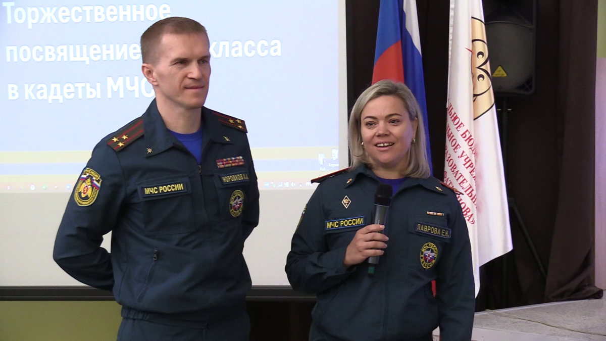 Главная часть события началась со слов торжественной присяги, что юные кадеты произнесли для себя, для Родины, для всех родных, близких, друзей, знакомых и незнакомых людей – так велит кодекс чести спасателей. А вслед было произнесено много теплых слов от тех, кто слушал эту волнующую клятву. В своём обращении к кадетам директор школы Ольга Балюк отметила, что этот день вписывает новую страницу в историю учебного заведения. Помощник начальника Главного управления МЧС России по Владимирской области Екатерина Лаврова подчеркнула, что спасатели рады появлению целого класса кадетов МЧС и верят в своих профессиональных наследников, а начальник отдела ИТМ и РХБЗ ГО Главного управления МЧС России по Владимирской области Александр Норовков развил эту тему, призвав ребят достойно нести звание кадета и всегда верить в свои силы и своих друзей. После слов поздравления первый заместитель главы администрации Вязниковского района Сергей Мальцев напомнил, что кадет – это не чин и не звание, а первая ступень призвания служить людям и Отечеству, а начальник Управления образования Галина Рогова призналась, что ей особенно приятен этот выбор целого класса, и поблагодарила родителей школьников, роль которых в этом выборе признала несомненной.