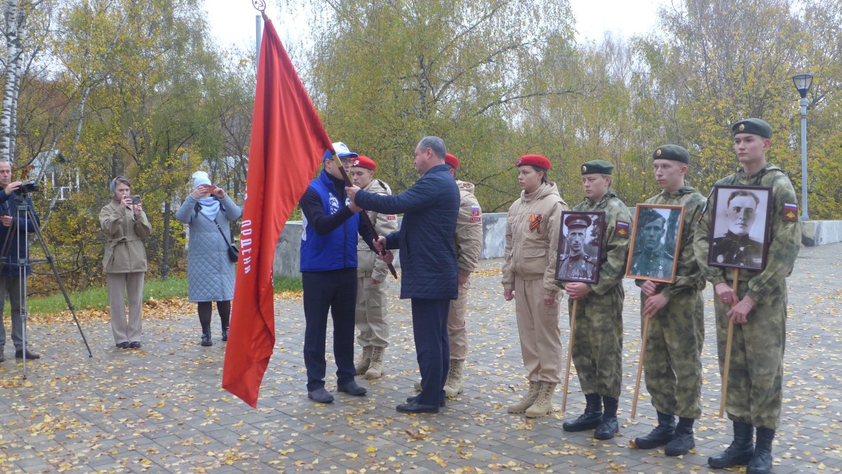 Эта торжественная церемония стала частью большого проекта, который стартовал на Дальнем Востоке, на острове Шумшу, где в 1945 году завершилась Вторая мировая война. Побывав во многих регионах России, 14 октября Знамя прибыло во Владимирскую область. В Вязниках делегацию от имени главы администрации района, секретаря местного отделения партии «Единая Россия» Игоря Зинина приветствовал заместитель главы администрации по социальным вопросам Александр Лазарев. В своём обращении к собравшимся он подчеркнул, что все мы являемся наследниками победителей, и что чем дальше отдаляется от нас памятная дата 9 мая 1945 года, тем мы всё отчётливее осознаём величие подвига советского народа, который одержал победу в самой кровопролитной в истории человечества войне. Участники церемонии передачи Знамени Победы почтили минутой молчания память погибших на фронтах той войны, тех, кто отдал жизнь во имя Великой Победы на трудовом фронте, и тех, кто в наши дни вёл борьбу с нацизмом в зоне СВО.