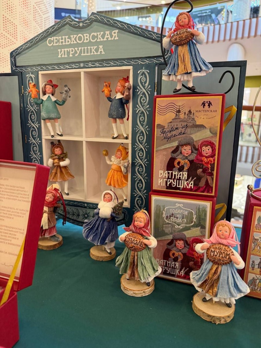 На Всероссийском конкурсе вязниковцы попали в самую многочисленную номинацию «Сувенир города», на которую было представлено более 100 работ из 350, в целом заявленных к участию. Мастерская ватной игрушки имени Сергея Сенькова из деревни Пески представила на суд жюри свою оригинальную коллекцию кукол «Девочка в народном костюме с пряником города». Результат – первое место!