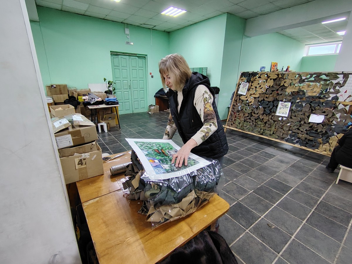 С начала открытия этой добровольческой группы во Мстёре её участниками сплетено уже более 1360 маскировочных сетей для армии. При упаковке к каждому изделию здесь также кладут детские рисунки, письма, чтобы наши военные получали по-настоящему тёплый привет из дома.