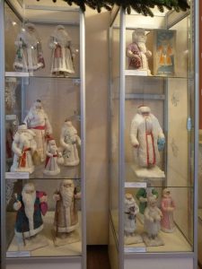 Отец Пётр рассказывает, что именно увлечение изготовлением ватных игрушек по старинной дореволюционной технологии и привело к тому, что несколько лет назад они с матушкой Ксенией стали заниматься собиранием подобных изделий. Сейчас в их семейной коллекции насчитывается более 50 старинных Дедов Морозов и Снегурочек. На выставке в музее представлено около 40 экспонатов. Самый редкий – Ленинградский Дед Мороз, датируемый мартом 1941 года, переживший блокаду, войну…