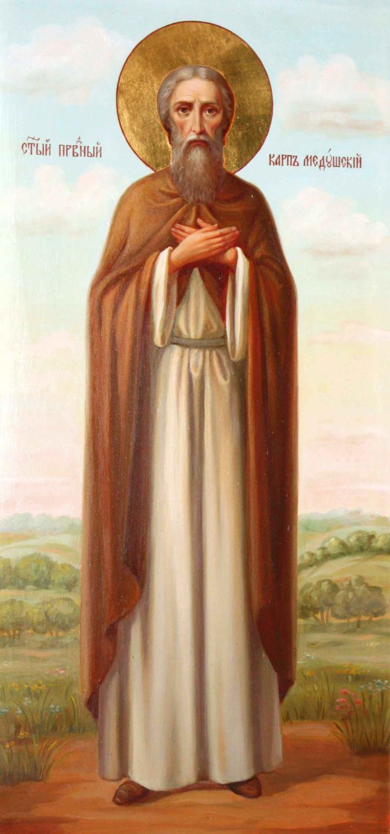 В 2006-м в Медушском погосте поселился инок Карп — это имя ему было дано в честь Карпа Медушского. Молодой монах, приехавший во Владимирский край из далекого Комсомольска-на-Амуре, жил в выстроенной при храме келье один, терпя всевозможные лишения. Вначале в погосте не было даже электричества. Зимой приходилось особенно туго — приходилось топить печь сырыми березовыми дровами, при попытках «пробиться» из погоста на «Большую землю» порой ломалась и безнадежно застревала в заснеженном поле видавшая виды монастырская «Нива». Вокруг, словно в житийных преданиях, обитало всевозможное зверье: кабаны, лисы, зайцы, лоси. Порой чудилось, что из леса того и гляди выйдет мишка, как когда-то приходил медведь к келье преподобного Сергия Радонежского…