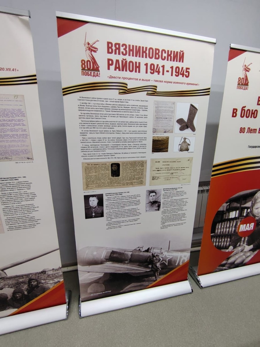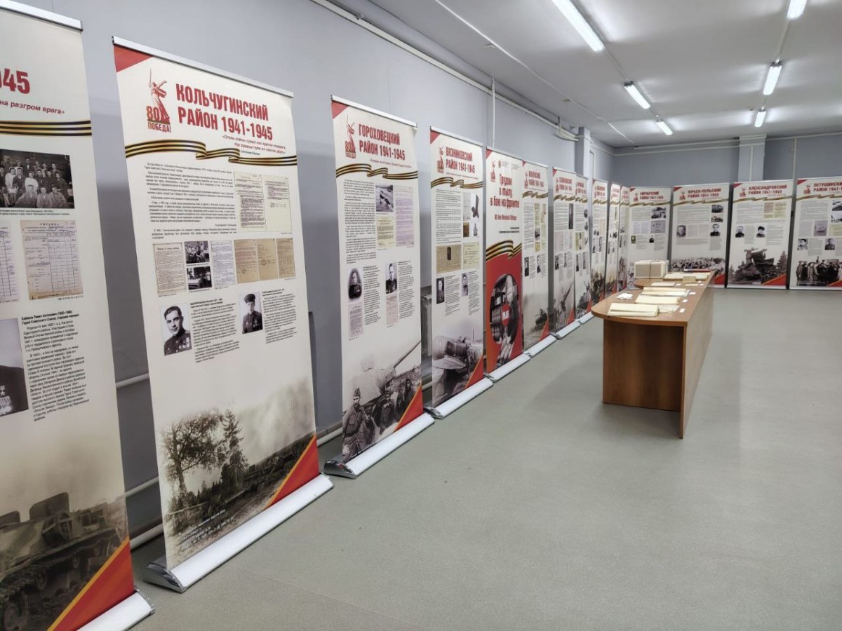 Выставка рассказывает о жизни и труде жителей разных территорий Владимирской области в годы Великой Отечественной войны; для каждого муниципального района оформлен отдельный стенд. Вся представленная информация подтверждена официальными архивными документами и фотографиями.