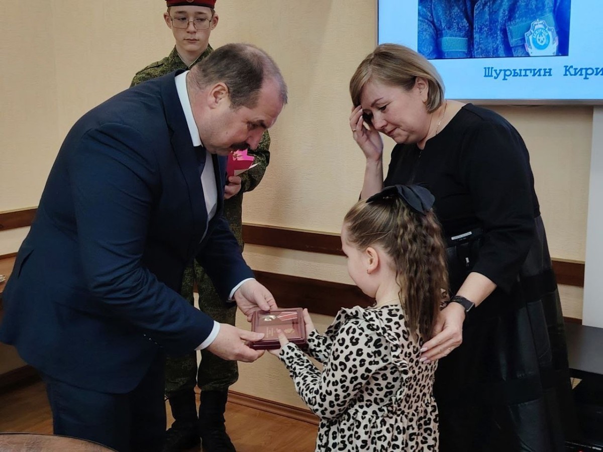 Государственную награду дочке погибшего бойца – маленькой Еве – торжественно передал глава районной администрации, секретарь местного отделения партии «Единая Россия» Игорь Зинин.