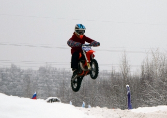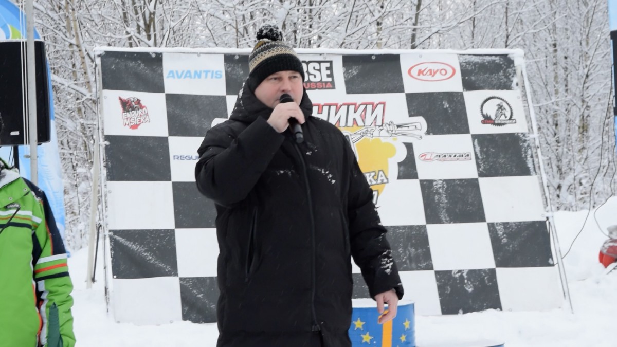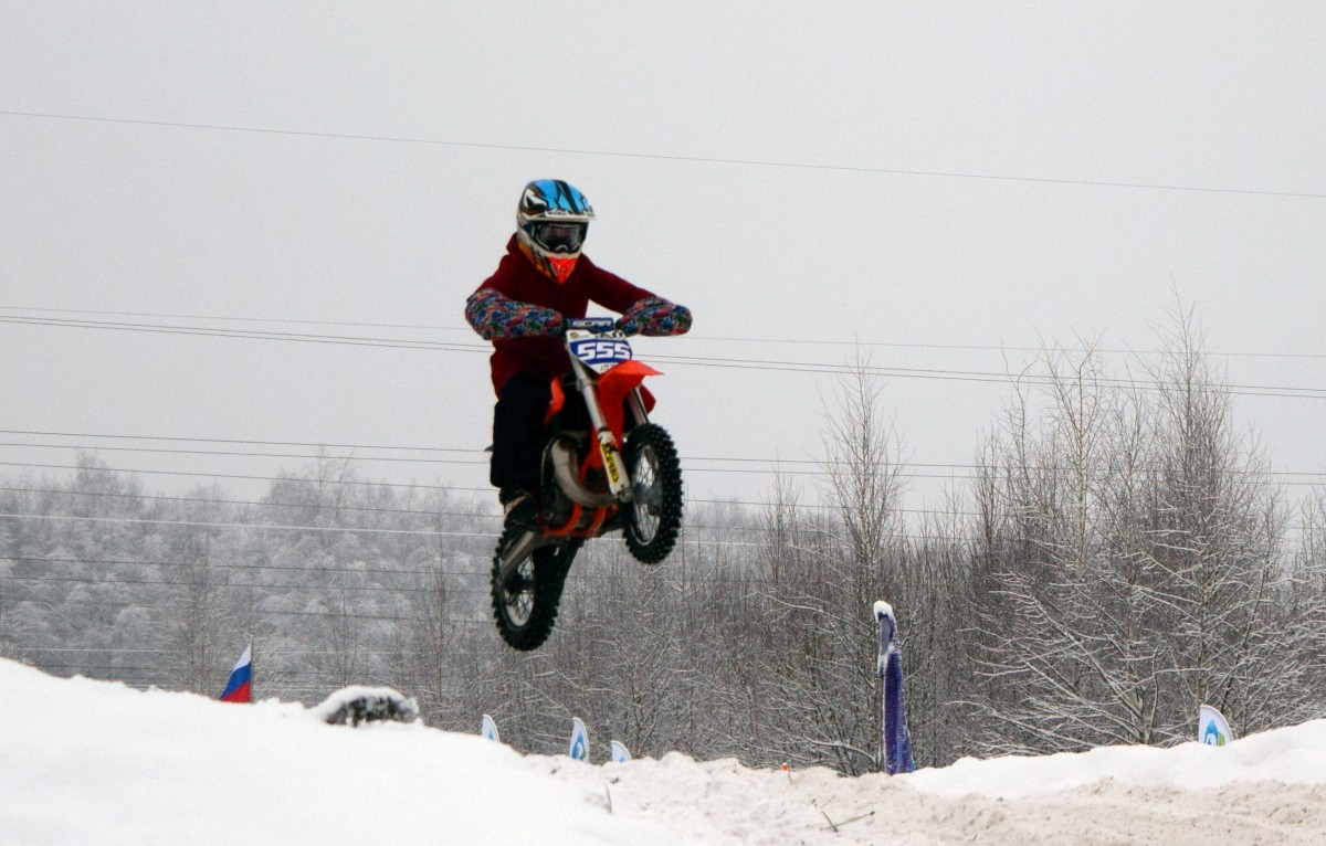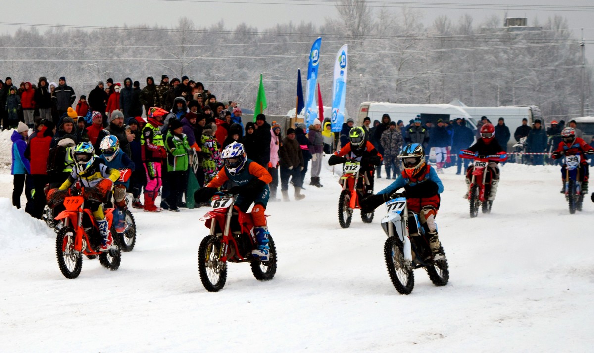 Заезды открыли самые юные гонщики на технике с рабочим объёмом двигателей в пятьдесят кубических сантиметров. Они лихо покоряли снежную дистанцию в 1300 метров, не снижая скорости штурмовали скользкие подъёмы и отчаянно взлетали на крутых трамплинах.
