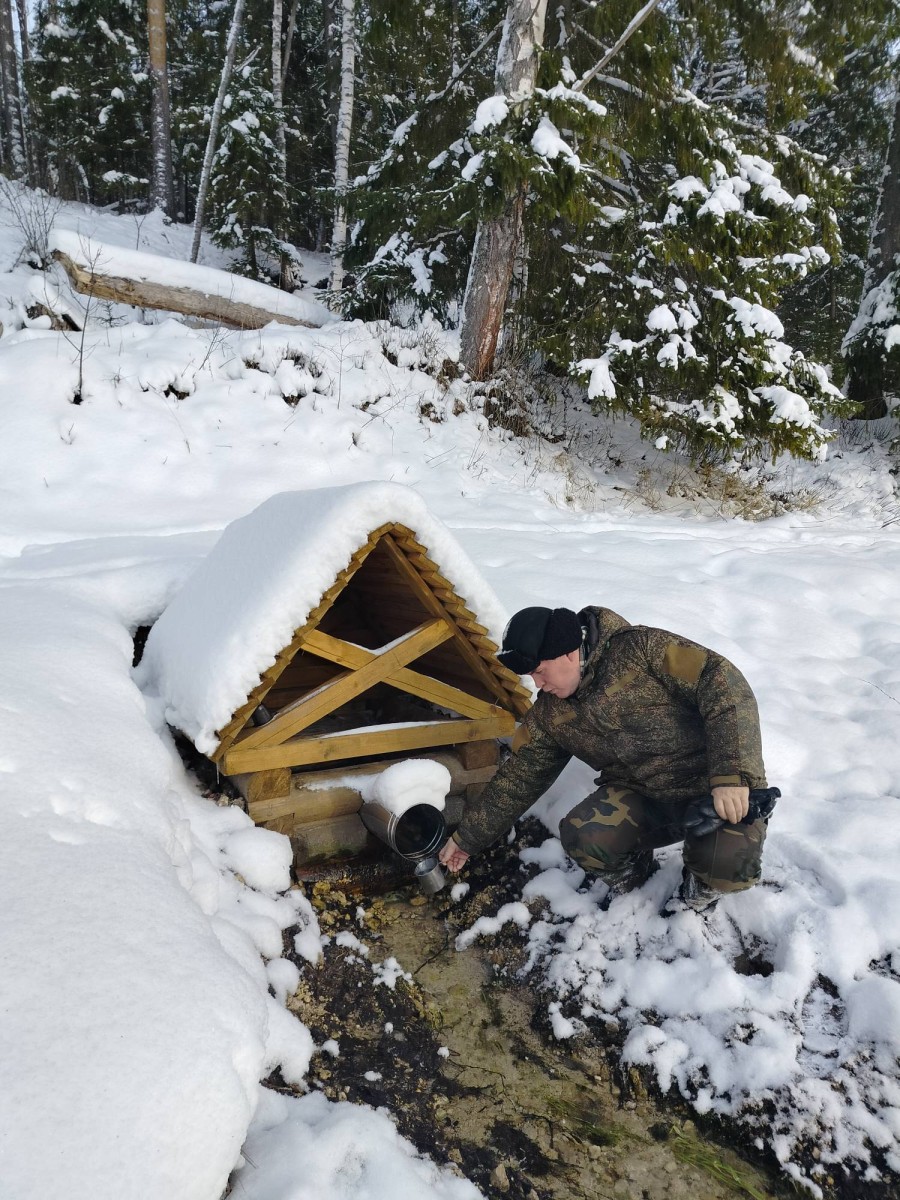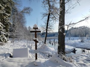 Первая декада нынешнего января выдалась на редкость снежной. Еле заметную тропку к Сергиевскому ключу совсем замело, от дороги Симонцево-Мстера туда необходимо пройти около полутора километров, что почти по снежной целине оказалось весьма непросто. Местами сугробы были по колено. Тем не менее, образ преподобного Сергия Радонежского был доставлен к ключу его имени и закреплен на кресте около источника. Конечно, нельзя было удержаться и не отведать целебной воды из Сергиевского ключа. На морозе и при холодном ветре ее пришлось пить не торопясь, маленькими глотками, дабы не застудить горло, но в итоге никто не заболел и не простудился. Оно и понятно – такая вода лечит, а не наоборот!