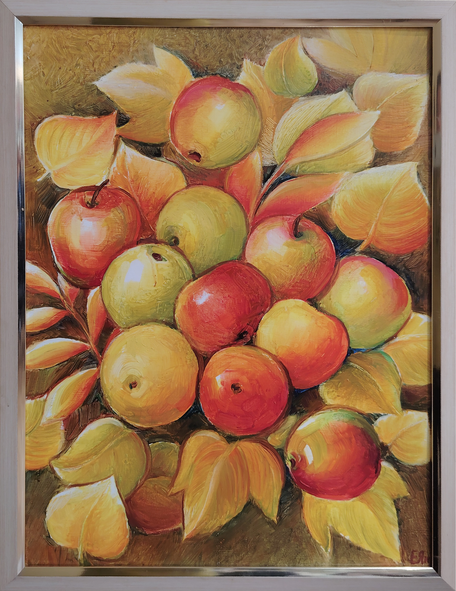 Это очень яркая и тёплая выставка, глядя на которую, настроение улучшается само по себе. Елена Николаевна Якимочева – мастер цветов и натюрмортов. Они ей удаются особенно хорошо. Растения и фрукты на её картинах выглядят очень реалистично. Я бы даже сказала – ароматно. Одно полотно с яблоками чего только стоит!