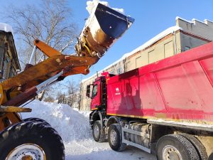 Накопленный снег вывозится на специально отведённые площадки для последующей утилизации.