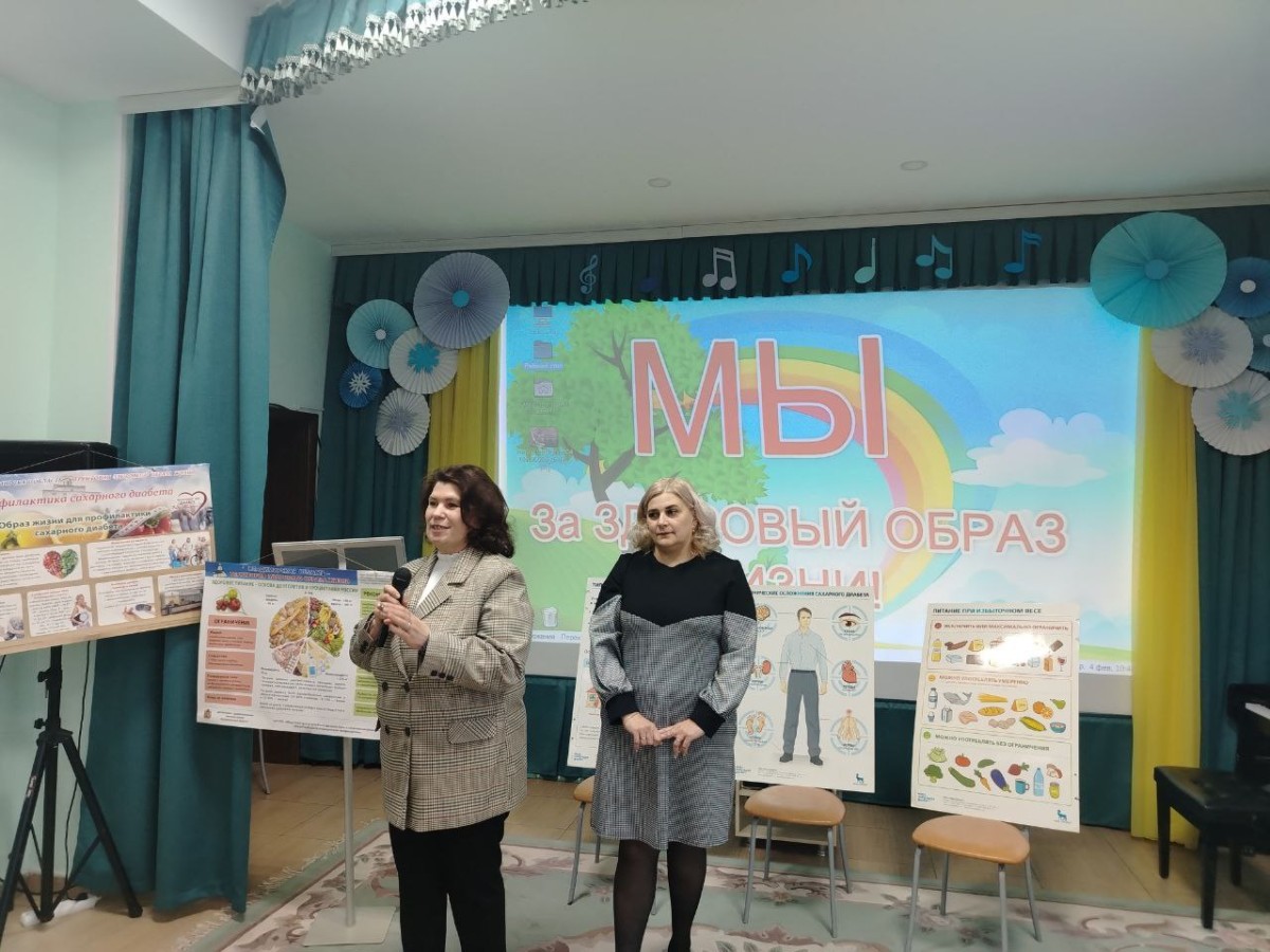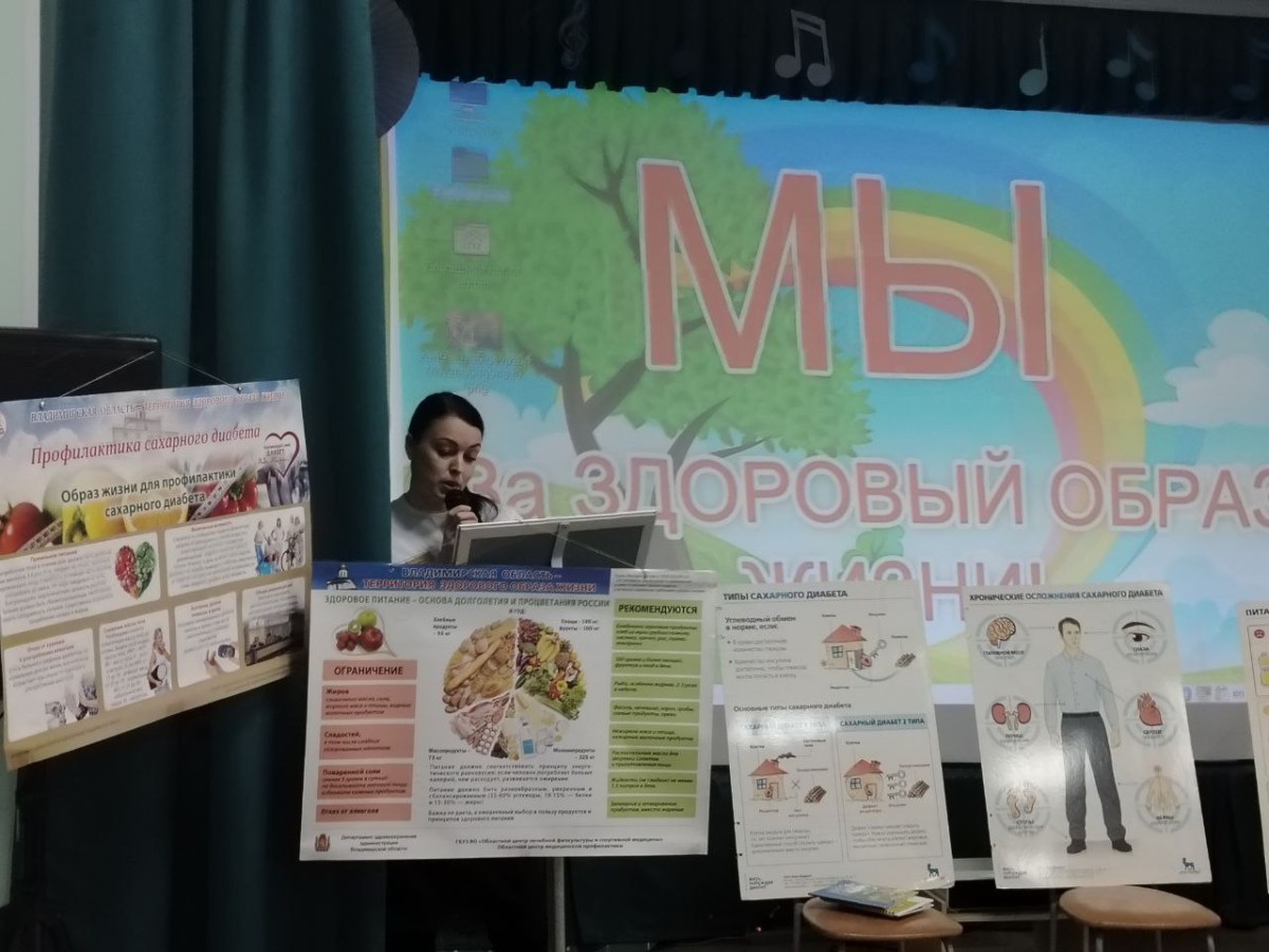 Во втором зале проходило занятие «Школы сахарного диабета». Тематика оказалась особенно актуальной для проживающих в пансионате, ведь у большинства из них диагностирован сахарный